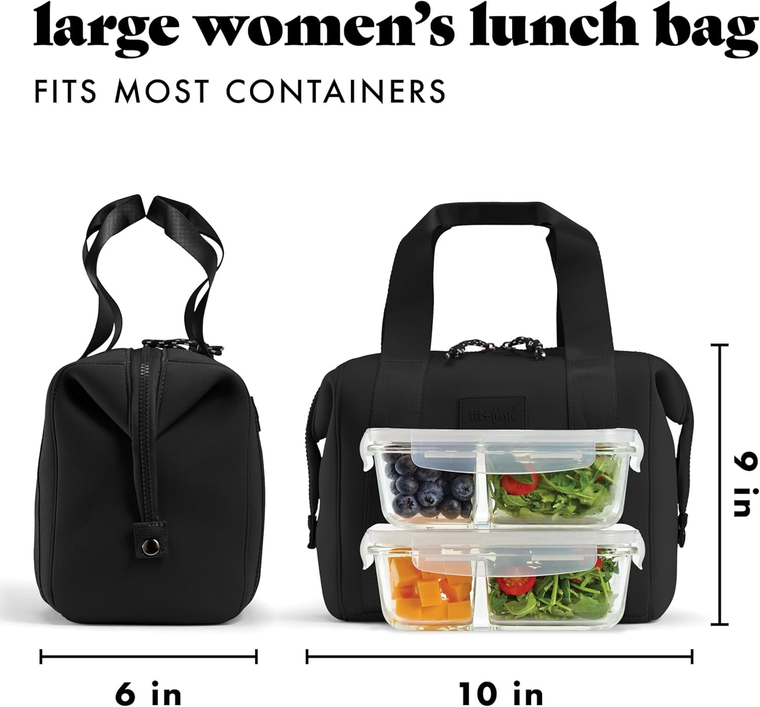 Elevate your lunchtime experience with the Remi Neoprene Lunch Bag for Women by Fit & Fresh. This chic and sophisticated meal prep kit stands out in its category, offering a perfect blend of style, practicality, and innovation. Crafted with premium, self-insulating neoprene fabric, this bag ensures your meals stay fresh throughout the day. Designed by women for women, it seamlessly combines fashion and function, making it an essential accessory for any woman on the go.